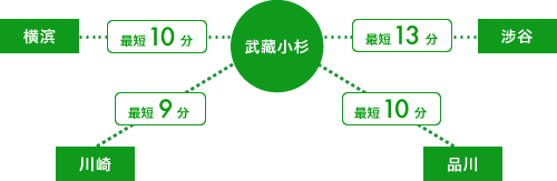 | 从涉谷站出发 | 乘东急东横线 最短13分 |