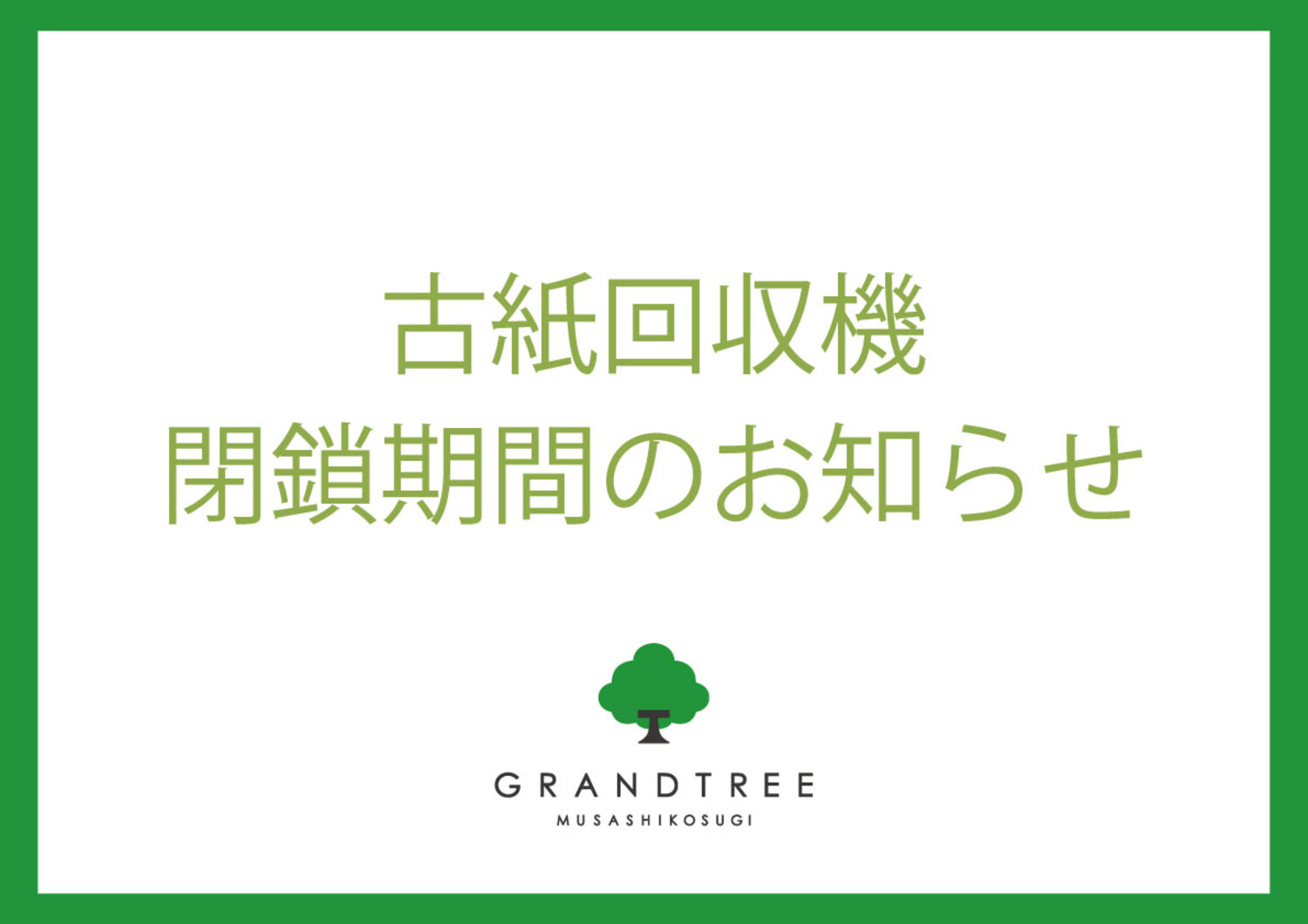 古紙回収機閉鎖のご案内