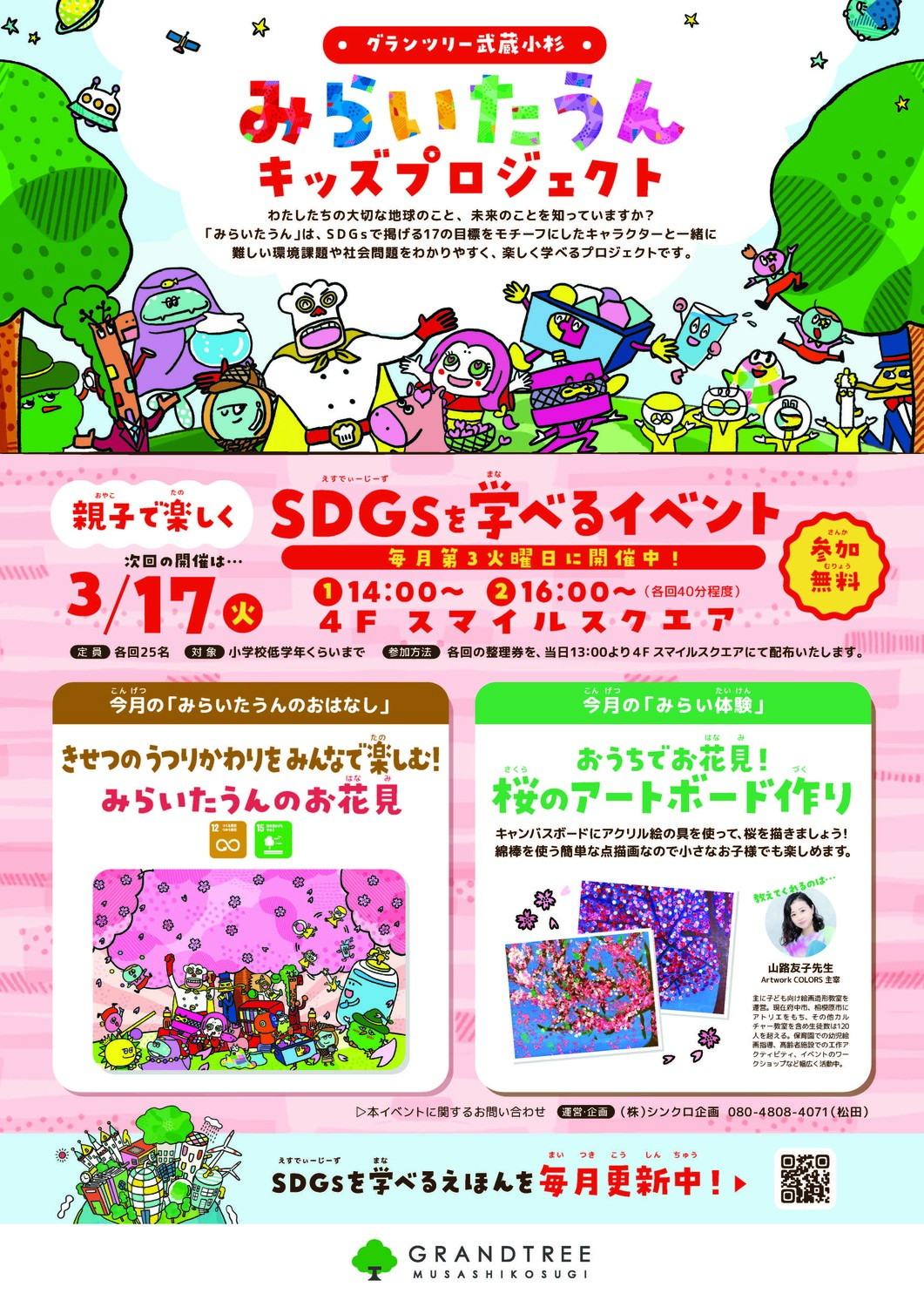 3月のテーマは「きせつのうつりかわりをみんなで楽しむ!みらいたうんのお花見」です。