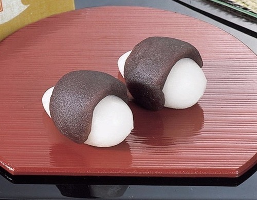 かたどったお餅に月にかかる群雲に見立てた餡を巻いて