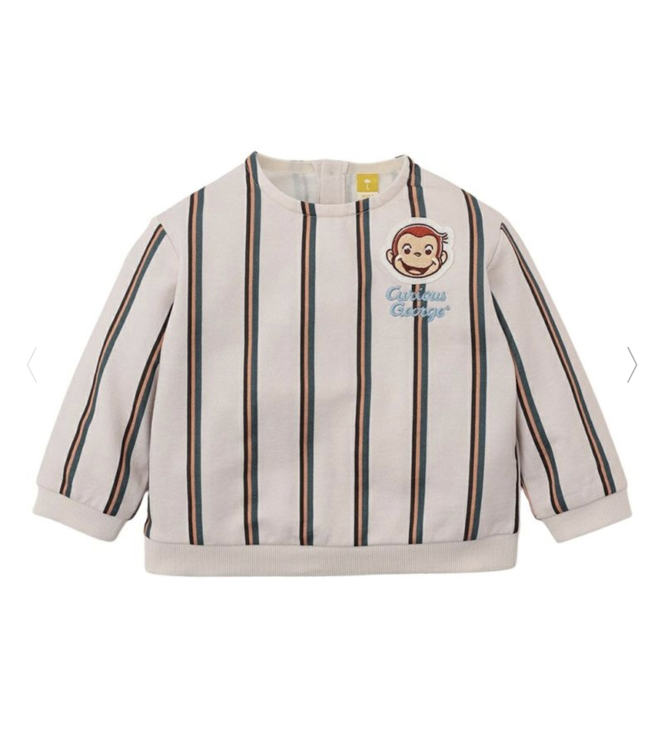 モイモルンらしい可愛らしい配色のオンブレストライプに、色毎に違うデザインのジョージワッペンをあしらったクルーネックトップス