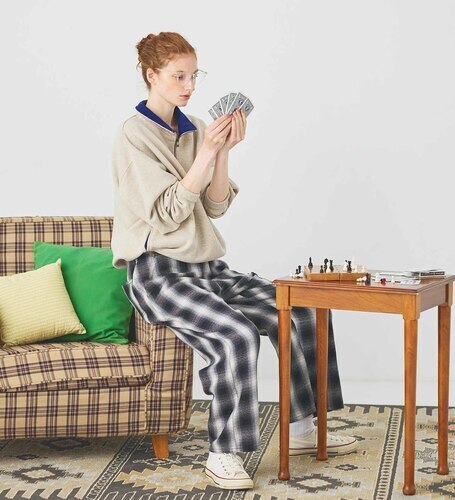 チェックパンツは柔らかい生地で程よくルーズに着こなせます!