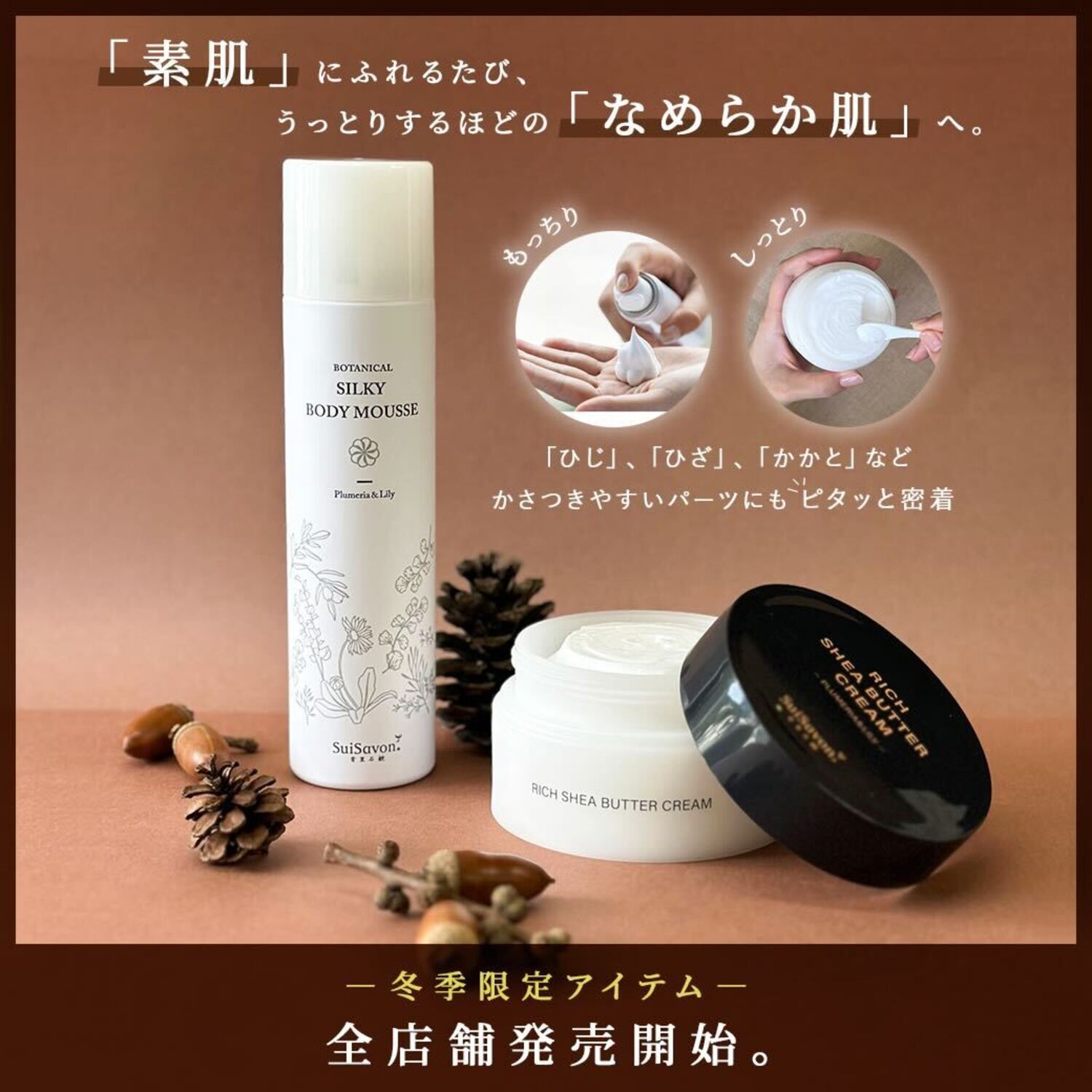 そんな厳しい環境でも、肌を守り、もっちりシルキー肌へに導きたい――その想いから「ボタニカルシルキーボディムース」は誕生しました。