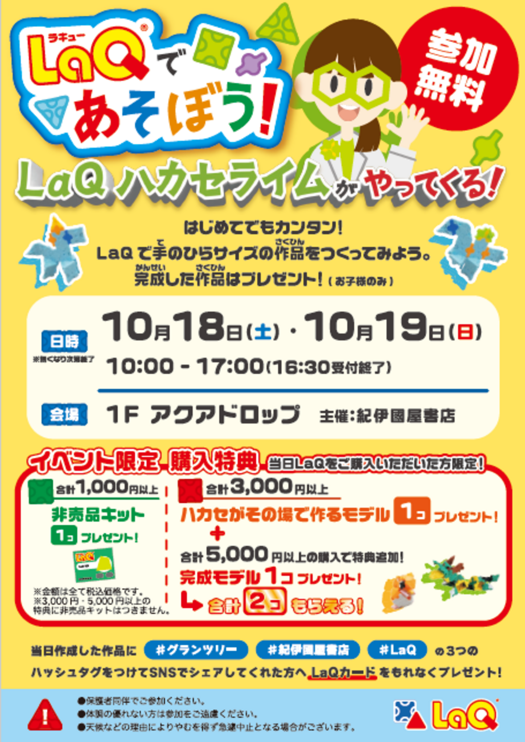 ・税込3,000円以上お買いあげ → LaQハカセがその場で作るモデル1個プレゼント