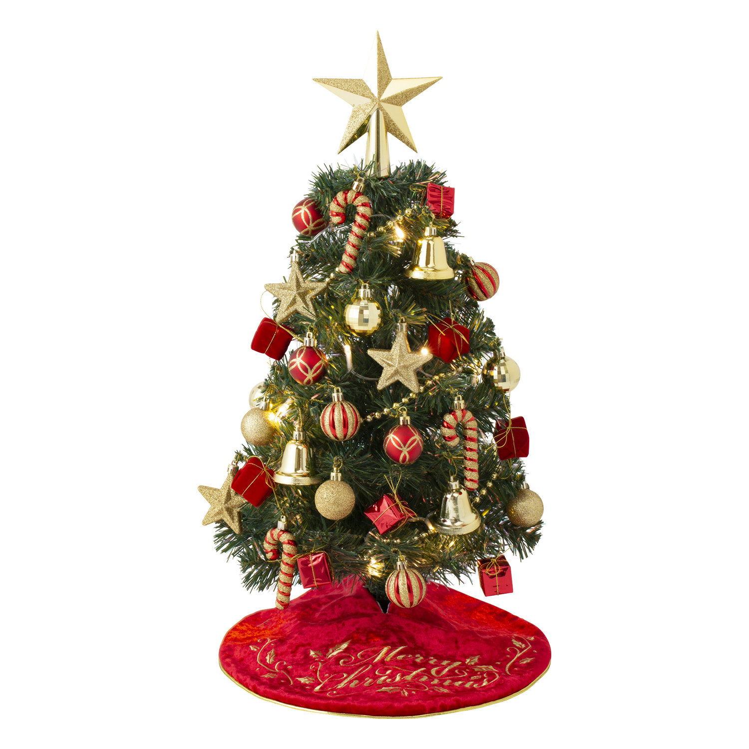 ツリー、オーナメント、ツリースカート、チェーン、ツリートップ、LED ライトがすべて揃ったスターターセットです