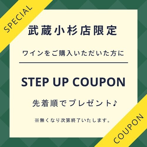 10/16(木)よりワインをご購入いただいた方に先着順で11月1日(土)から武蔵小杉店限定で使える「ステップアップクーポン」を配布いたします!