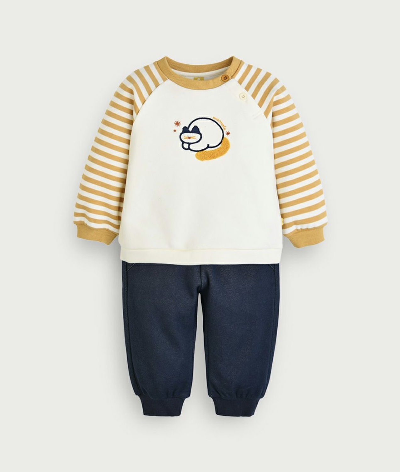 【セットアップ】キャットボーダー起毛長袖トップス&パンツ