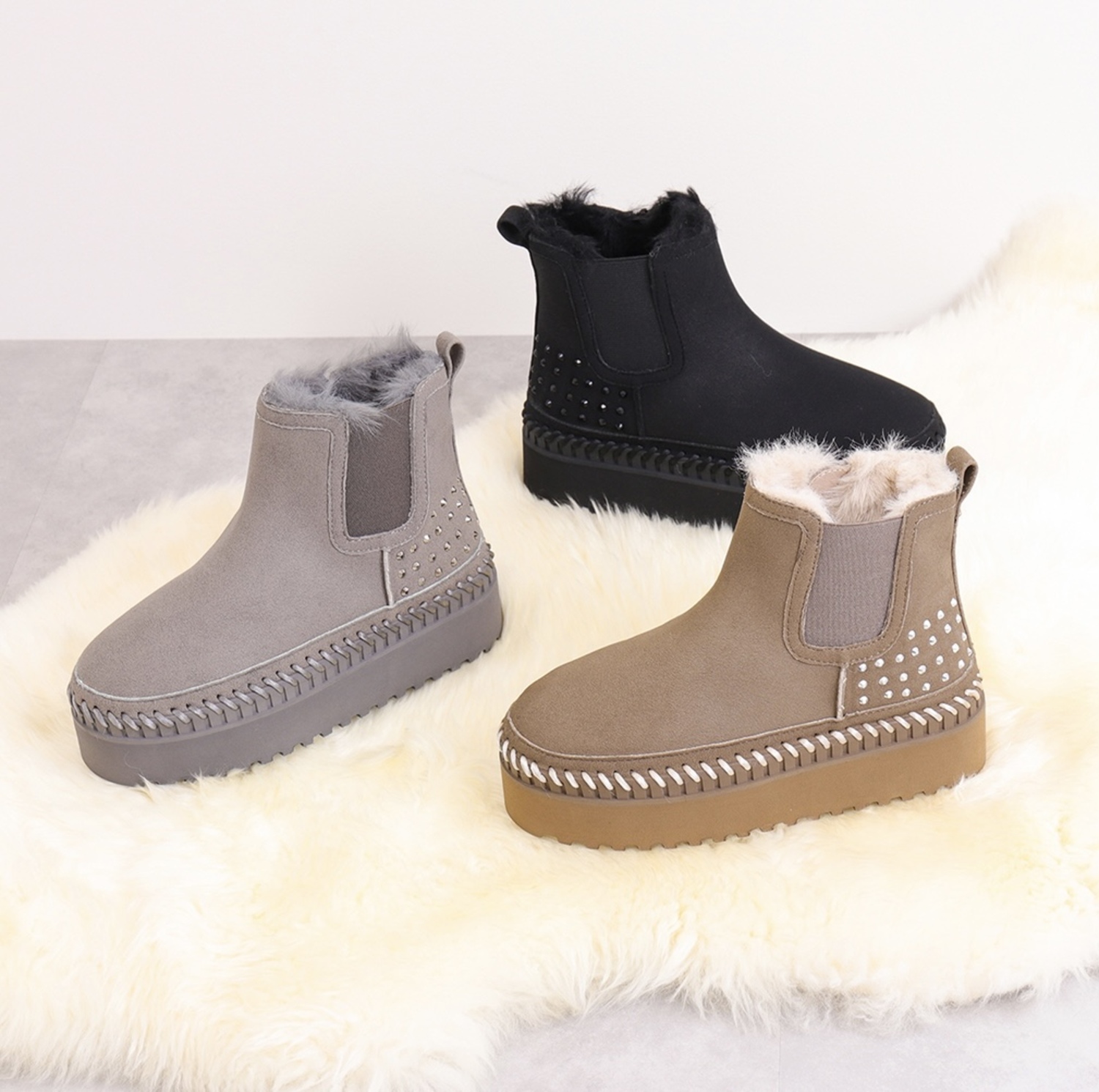 【軽量】厚底フェイクムートンブーツ