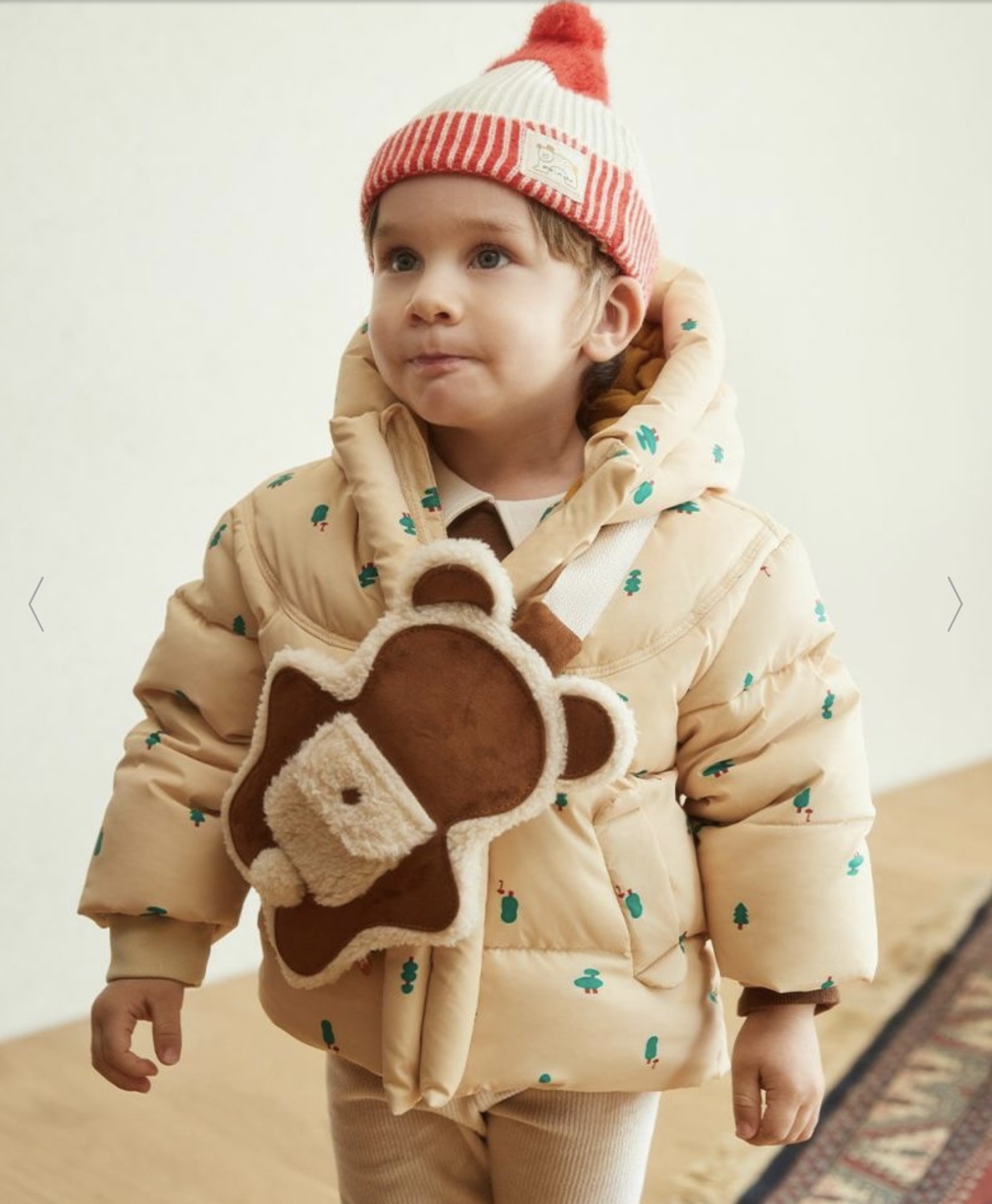 雲のようにふんわりしたボリューム感あるクラウドフードのダウンジャケット。フロントのクロージング側の丸みを帯びたディテールのポイントやポケット口にはアレンジも加え、フロントにはマーク刺繍、背中にはブランドロゴワッペンが付いています。フードや裾にはゴム入りでやさしくフィット、裾の内側にはストッパーも付いているので調整も可能。ファスナーで脱着が簡単、ファスナーの内側にはファスナーガードを付け、肌への刺激を防止しています。裏地にはフリース、中綿にはダックダウンを使用し軽くて保温性に優れ、冬のデイリーで着やすい実用的なダウンジャケット。