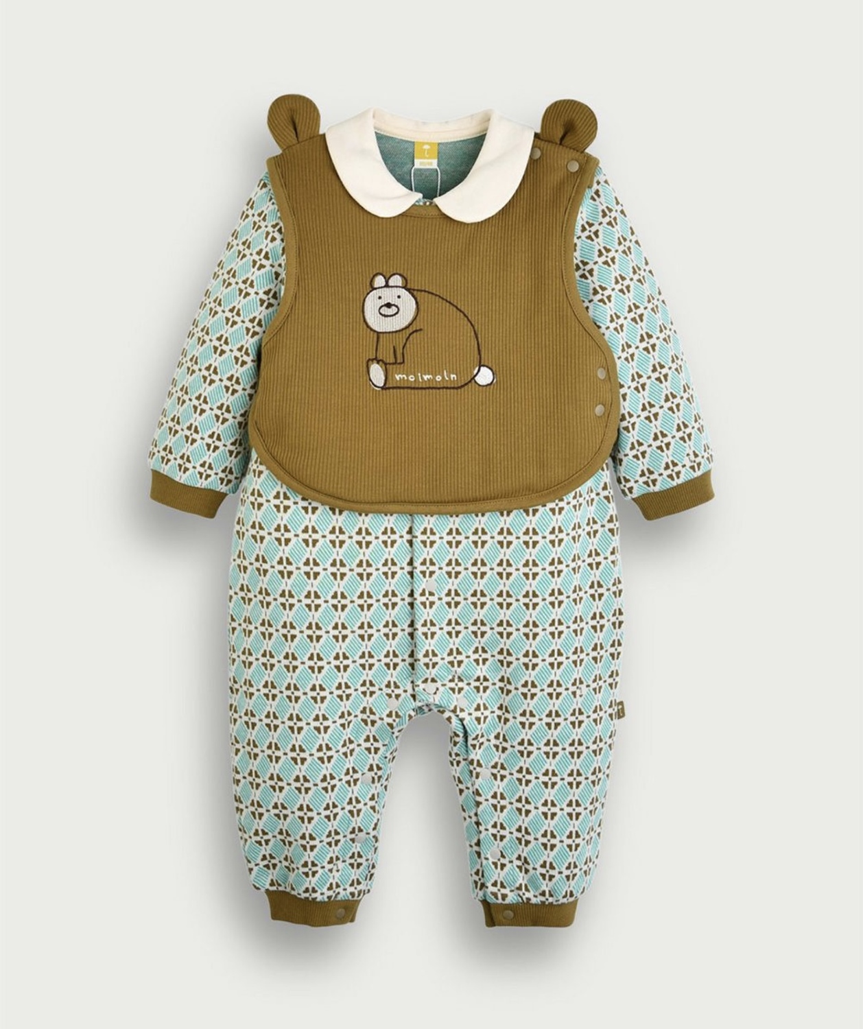 幾何学的なクローバー模様の長袖カバーオールとベストのセット⭐︎