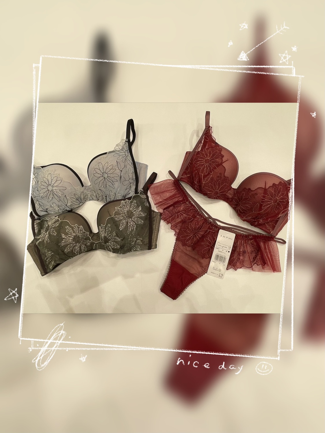ニュアンスのあるレースとアクセントのテープ使いが洒落感のある華やかなグループです。