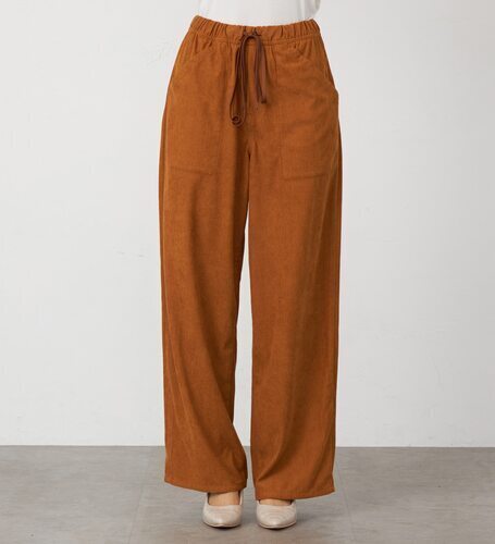 ポリエステル素材のコーデユロイでワイドシルエット。