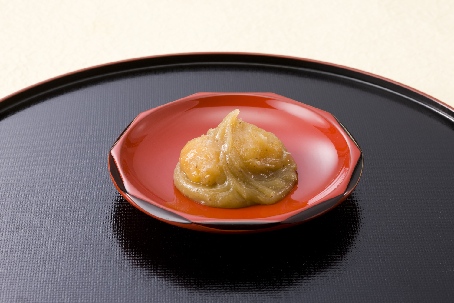 国産栗ペーストを使用し柔らかく仕立てた、きんとんの中に和栗を二粒しのばせました。