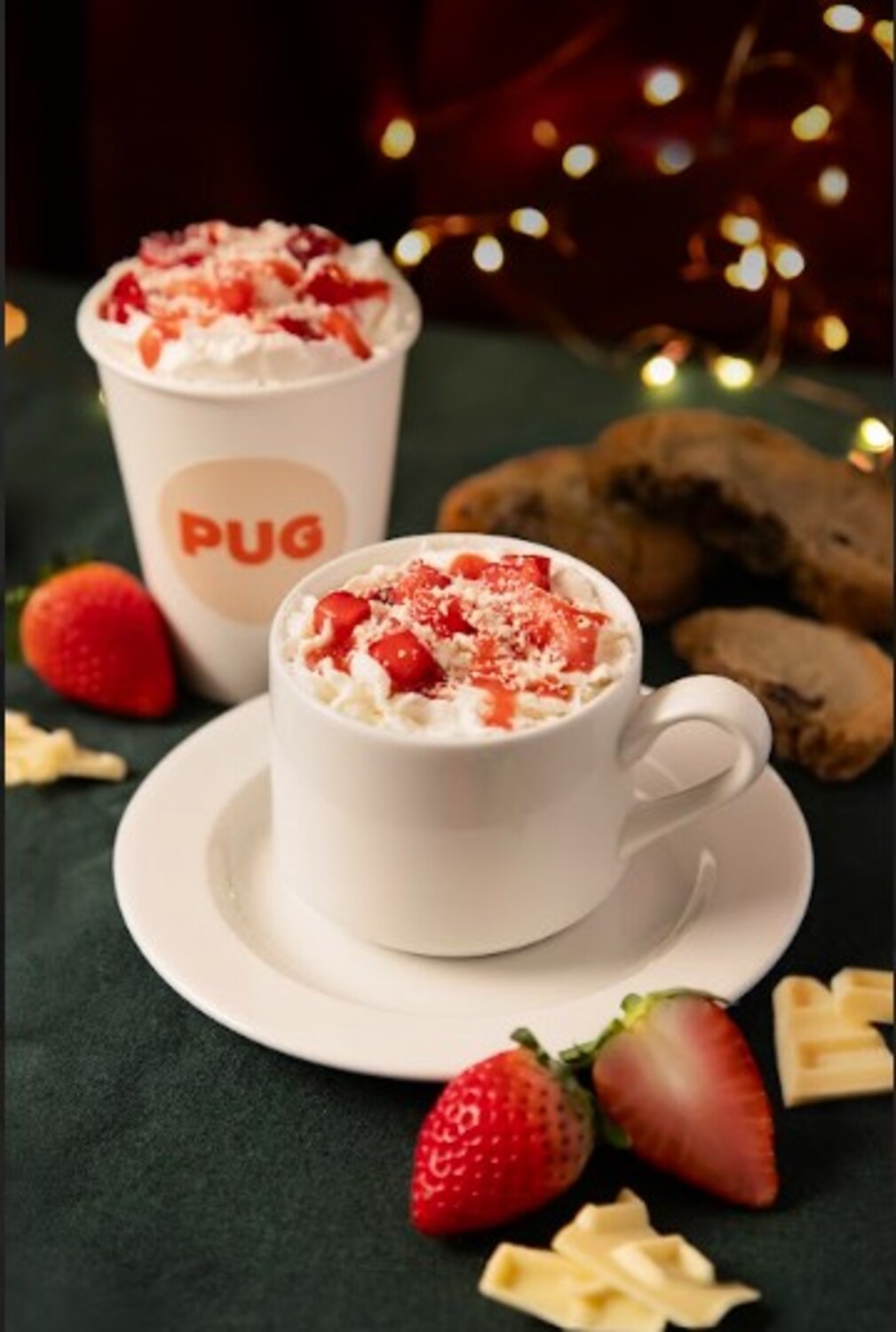 冬に楽しみたいホワイトチョコとストロベリーの優しいハーモニー。なめらかな甘さにほんのり酸味を添えたこの季節だけの特別な一杯。ストロベリーダイスを添えたホイップクリームで見た目も味わいも贅沢に!クッキーと一緒に冬のひと時をお楽しみください。