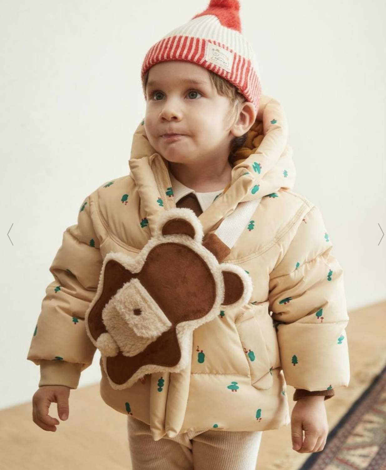 雲のようにふんわりしたボリューム感あるクラウドフードのダウンジャケット。フロントのクロージング側の丸みを帯びたディテールのポイントやポケット口にはアレンジも加え、フロントにはマーク刺繍、背中にはブランドロゴワッペンが付いています。フードや裾にはゴム入りでやさしくフィット、裾の内側にはストッパーも付いているので調整も可能。ファスナーで脱着が簡単、ファスナーの内側にはファスナーガードを付け、肌への刺激を防止しています。裏地にはフリース、中綿にはダックダウンを使用し軽くて保温性に優れ、冬のデイリーで着やすい実用的なダウンジャケット。