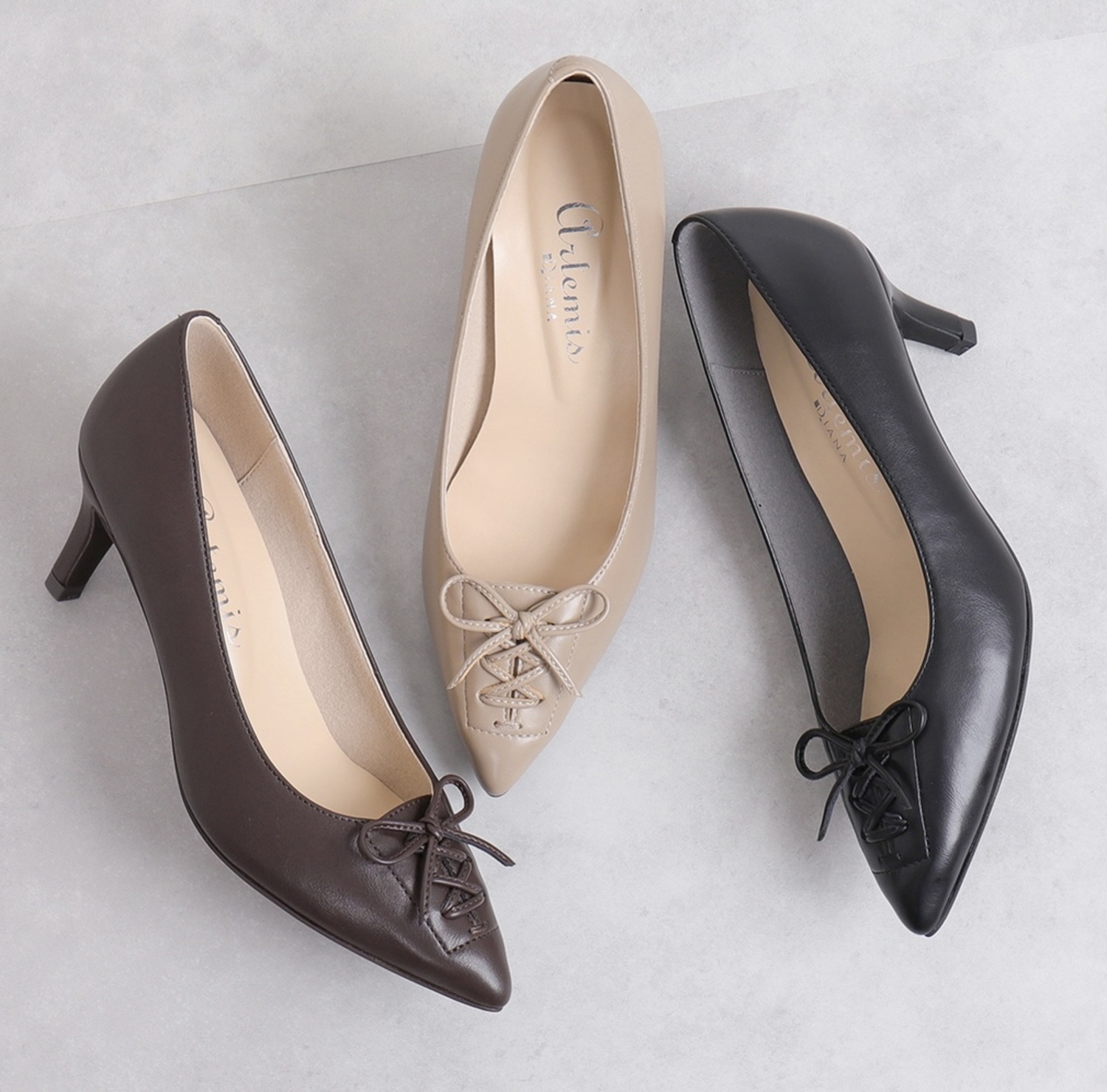 ソフトなポインテッドトゥで、ボトムスのシルエットを選ばず着回しやすいのがポイント!