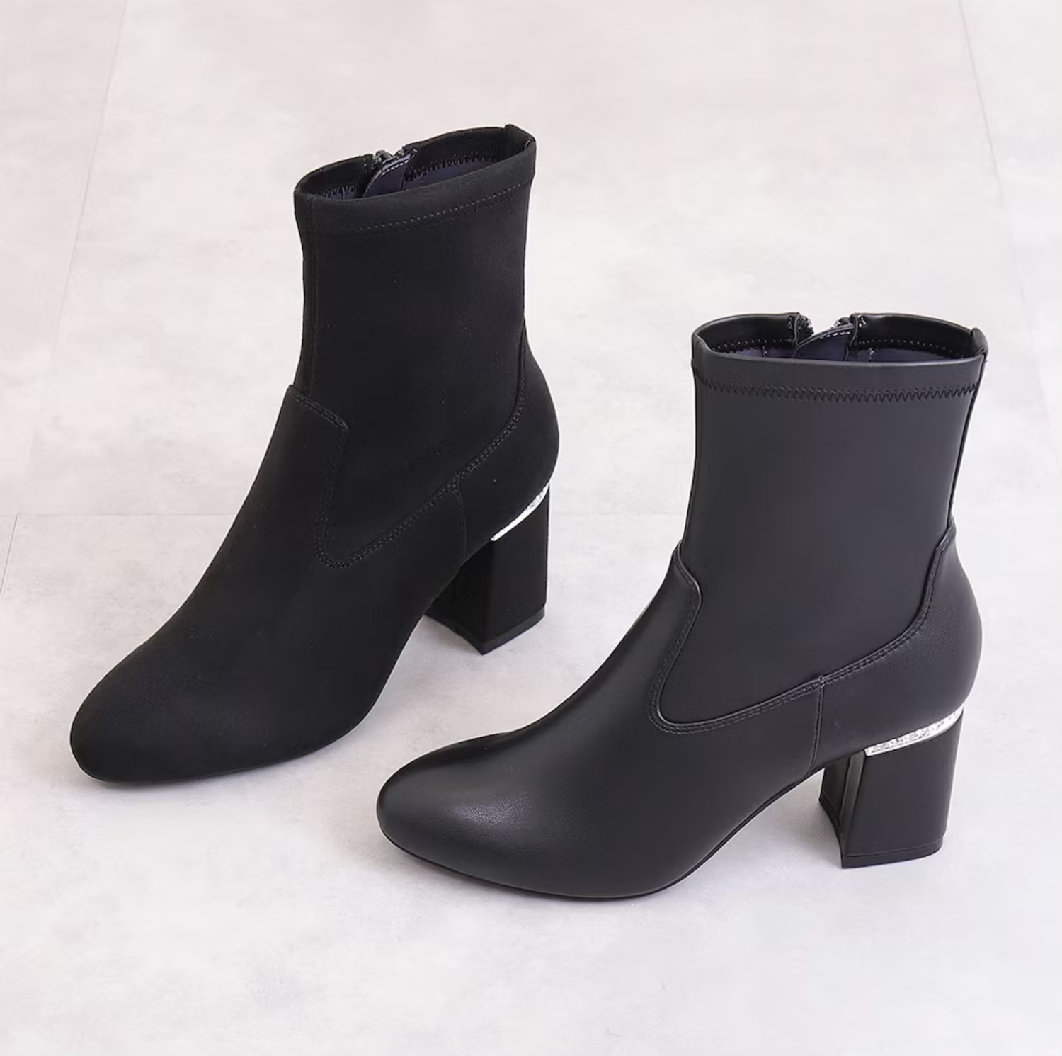 ヒール根元のビジューが目をひくショートブーツ♡シンプルなデザインながらも、歩く度にビジューがきらめいて華やかさを添えてくれます♪