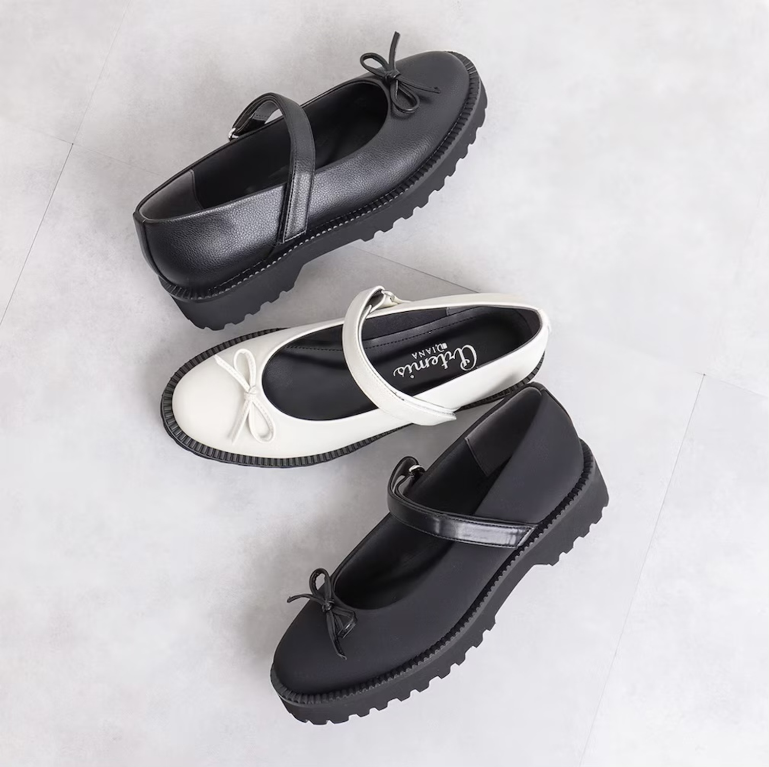 女性らしいフェミニンなデザインのアッパーと、スポーティーな厚底の組み合わせがトレンド感たっぷりのメリージェーンシューズ♡