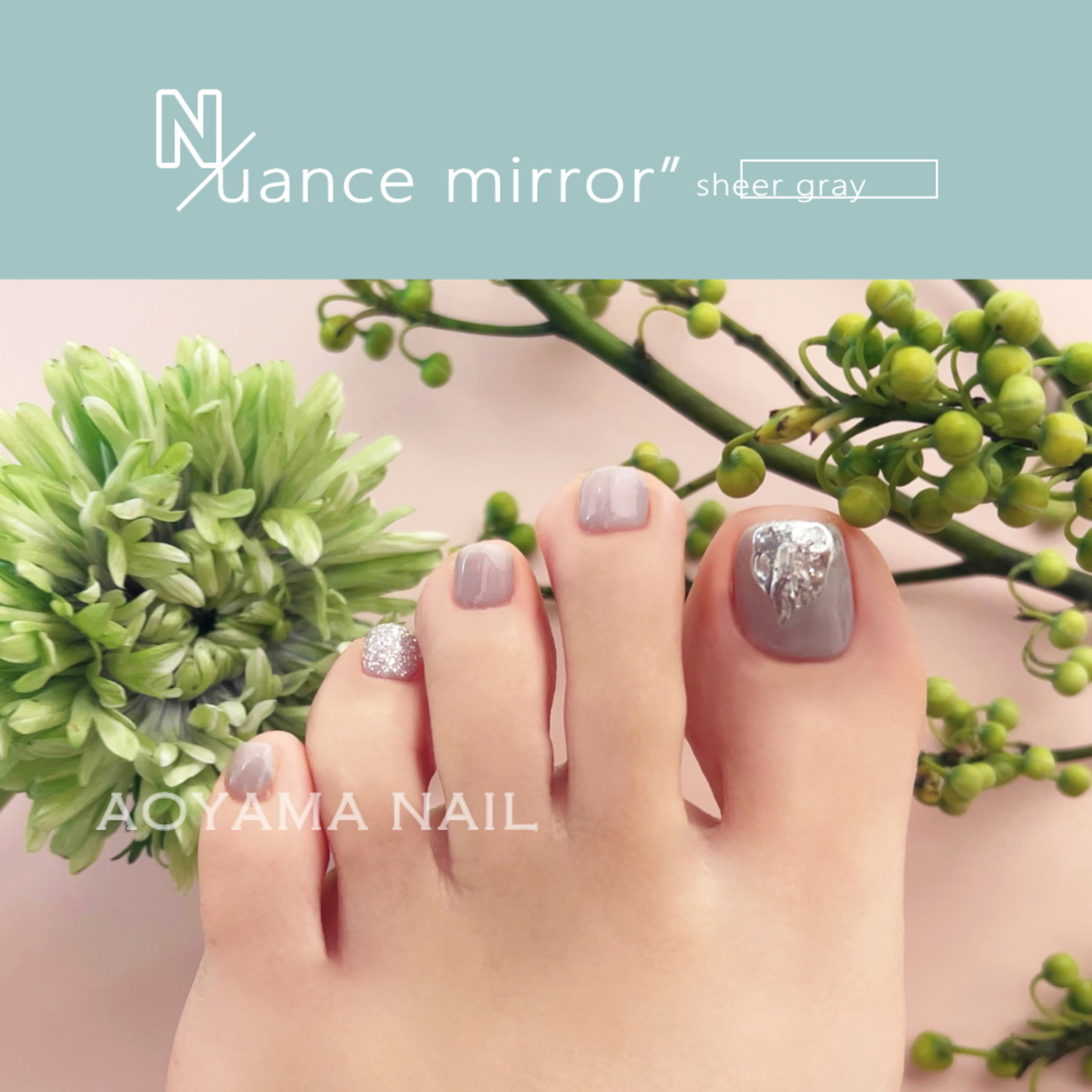 ぷっくり立体的なニュアンスミラーと透け感のあるグレージュカラーを合わせた