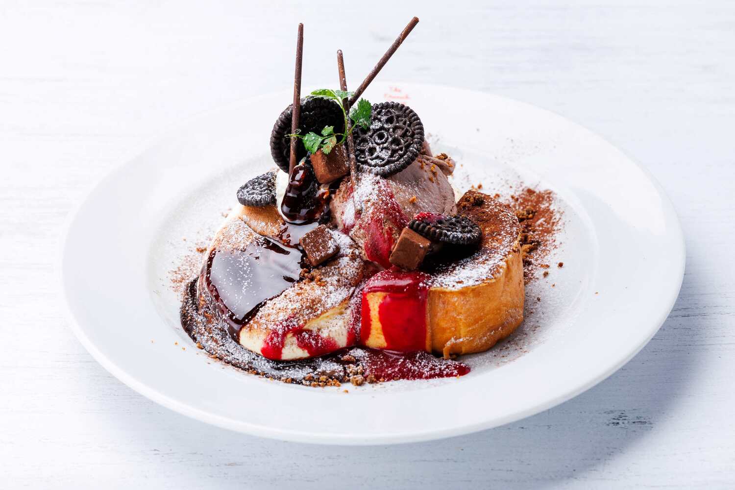 生チョコレートやジャンドゥーヤアイス、フランボワーズソースをかけたチョコ好きのためのシスターズ