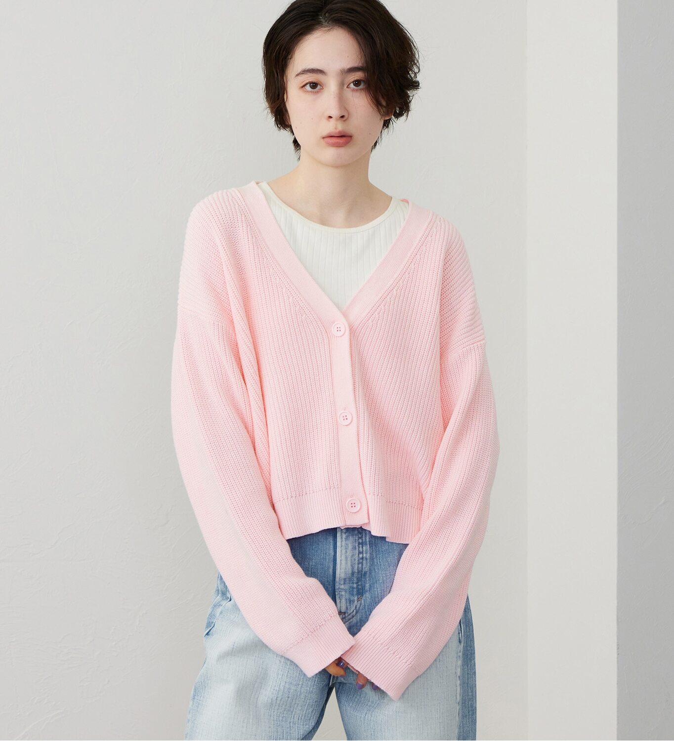 襟元をキレイに魅せるVネックのニットカーディガン。