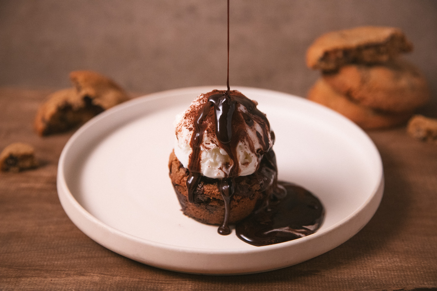 暖かいクッキーとカカオソースに冷たくさっぱりとした味わいのミルクアイスが相性抜群!!
