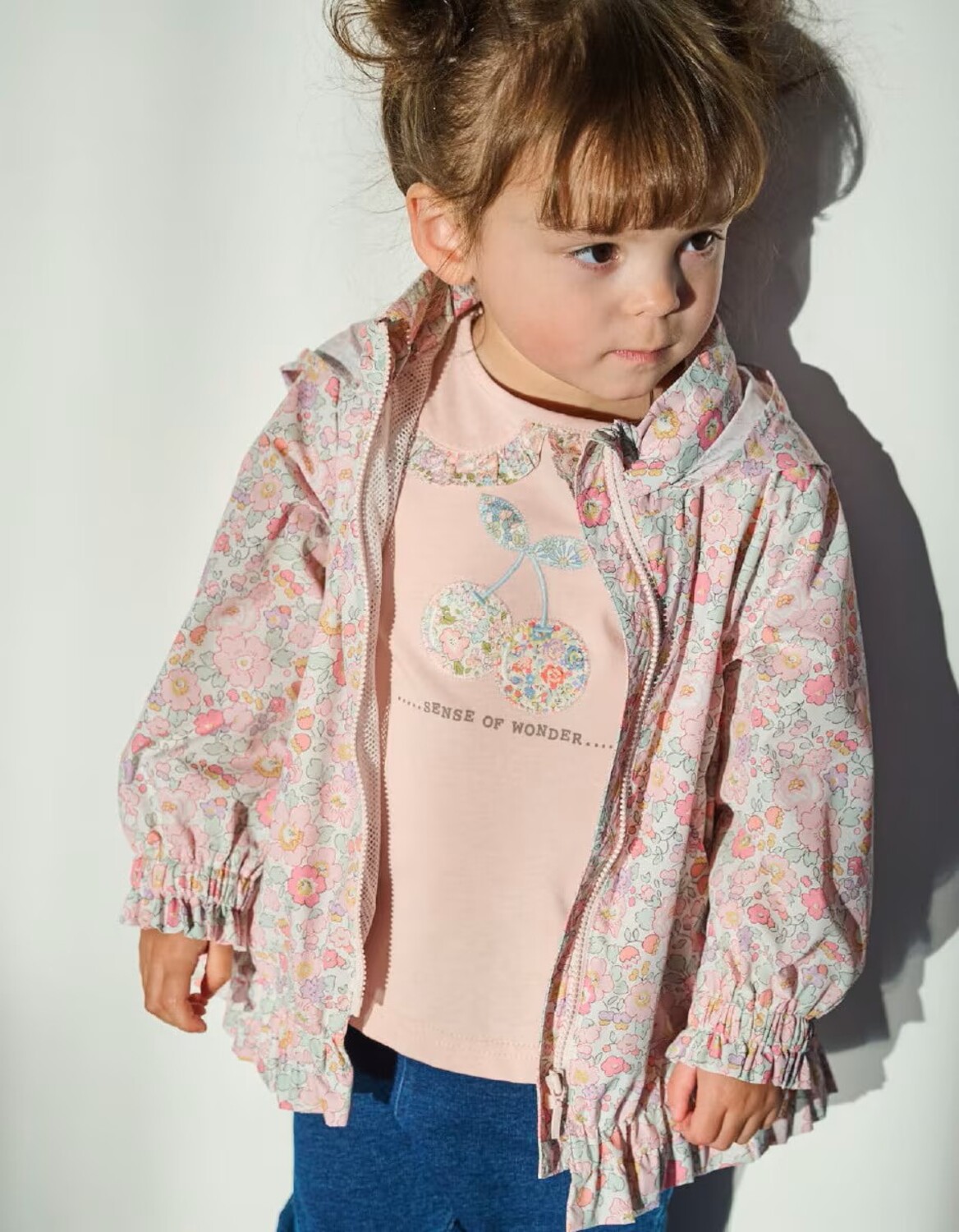 リバティファブリックの「Betsy(ベッツィ)」を大胆に使用したウィンドブレーカーとその日のコーデや気分によって使い分けできるリバーシブル仕様のウィンドブレーカー。