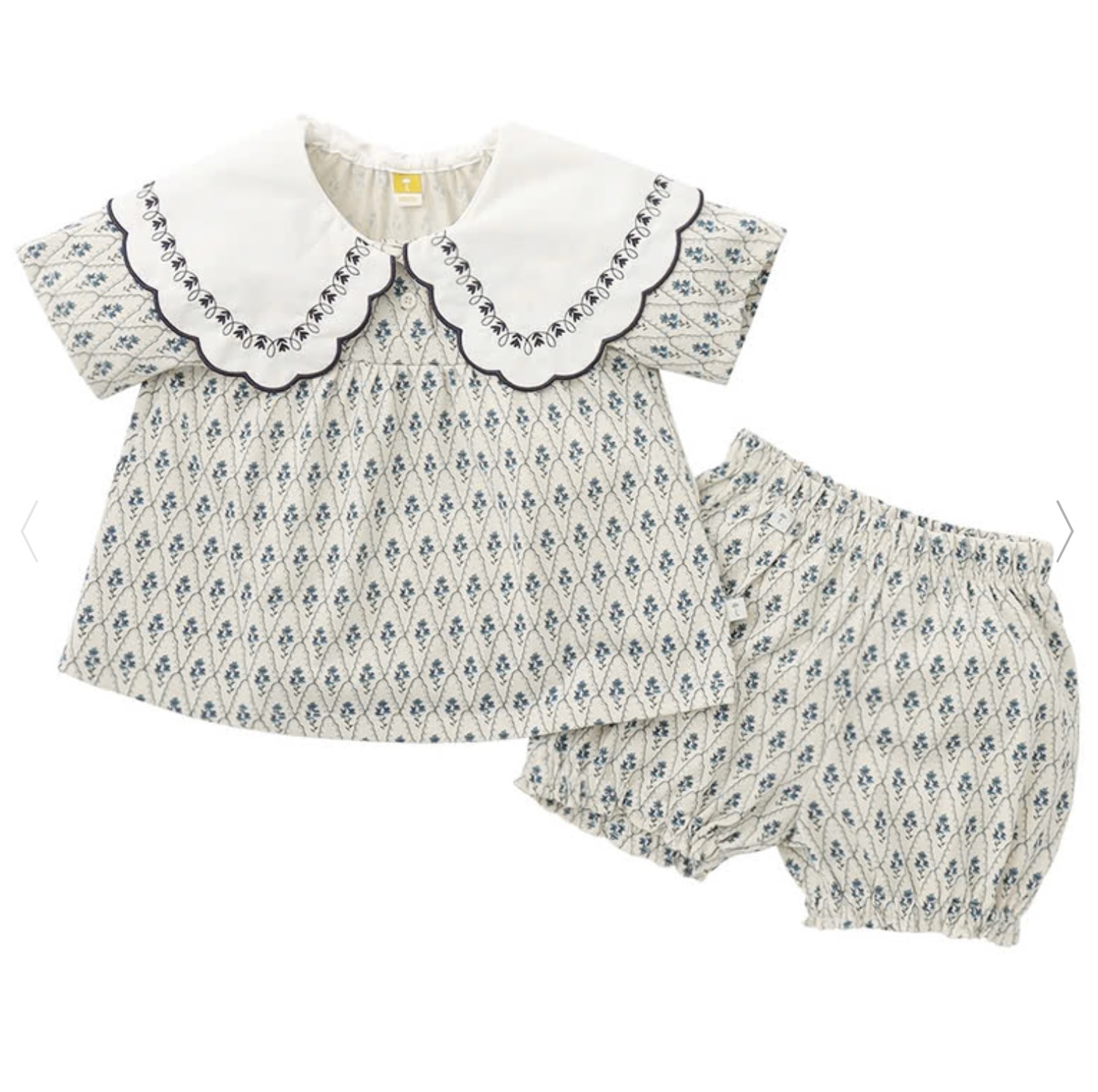 【日本限定】雲のような形の大きなカラーがインパクト大の半袖トップスとブルマパンツのセット。