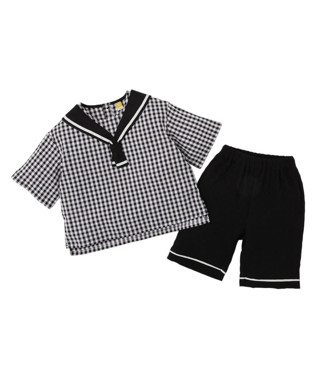【セットアップ】ギンガムセーラーカラー半袖トップス&ハーフパンツ