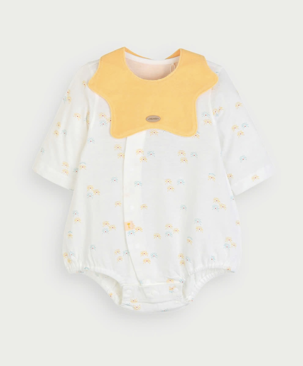 夏の夜空に咲く光の花をイメージした、華やかな総柄ボディスーツとスタイのセット⭐︎