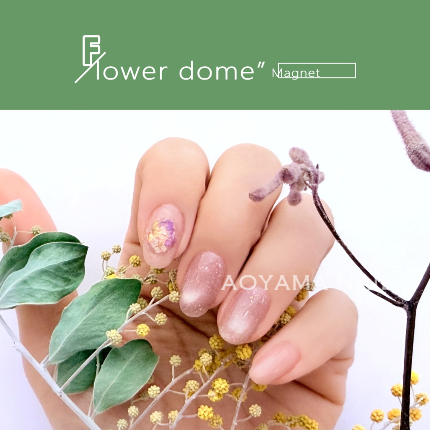 シアーピンクベージュのマグネットネイルと春らしい押し花ドームデザイン☆