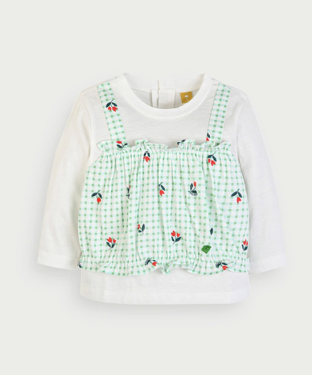 ミントカラーのチェックにチューリップをMIXしたプリントの長袖Tシャツ♡