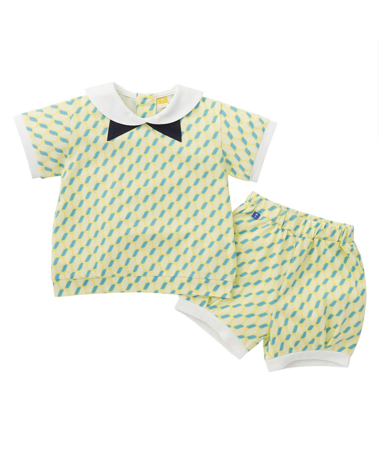 【日本限定】リボンモチーフ付きセーラーカラーがさわやかな印象を与えてくれる半袖トップスとショートパンツのセット⭐︎