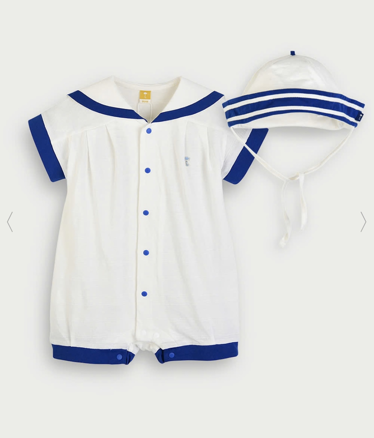 帽子はマリンテイストのあるデザインで落下防止のための紐が付いています。