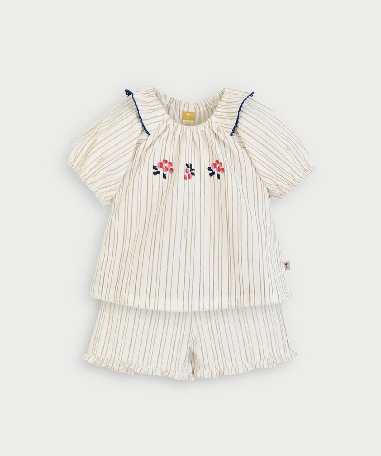 カラーによって違う色のベリー刺繍がポイントの半袖トップスとパンツのセット♪