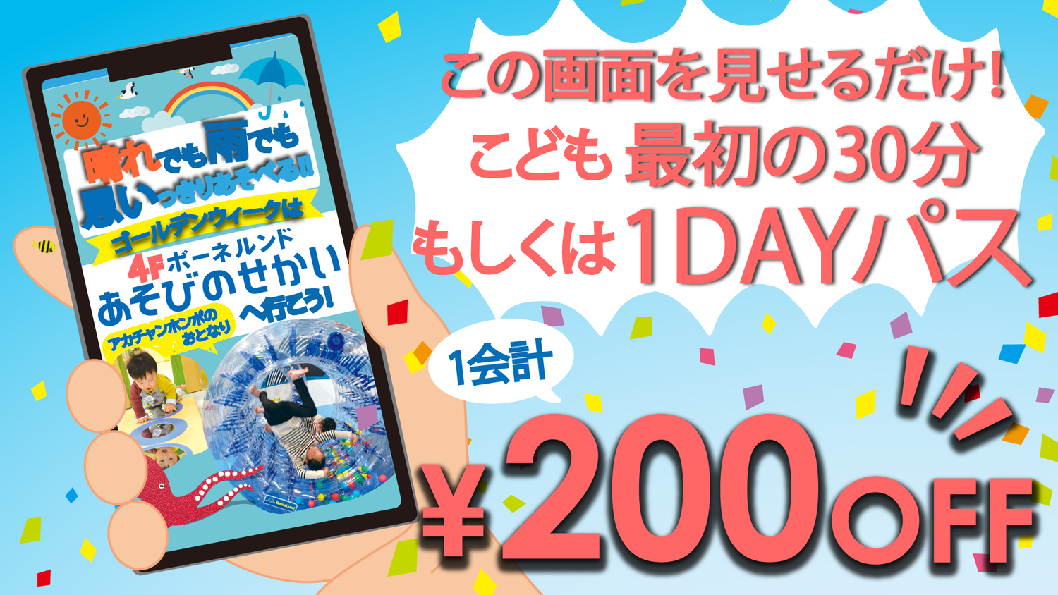 ※子ども時間制(ベビー時間制除く)、当日1DAYパスが対象