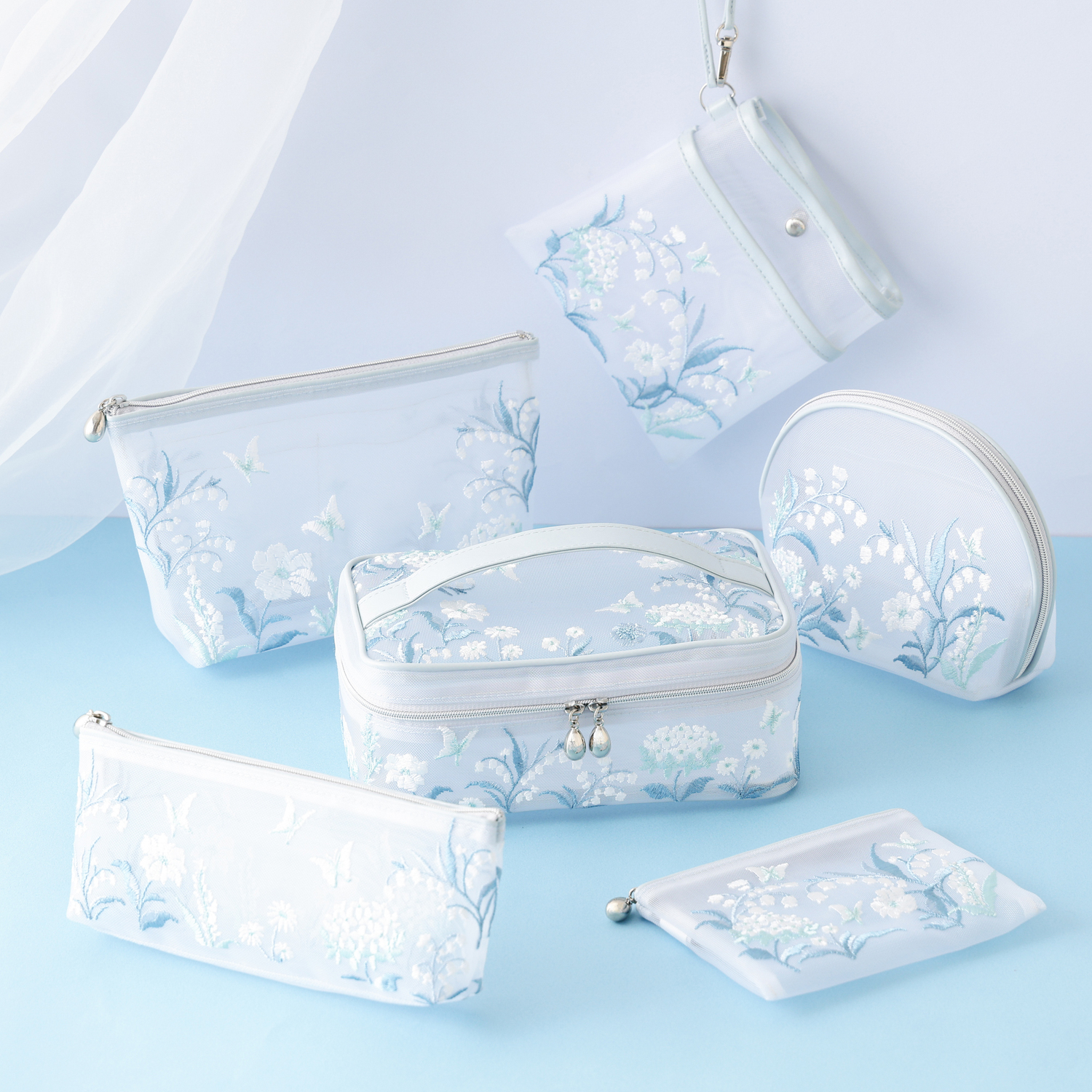 華やかなエンブロイダリー柄の刺繍をふんだんに施したポーチシリーズです🌸