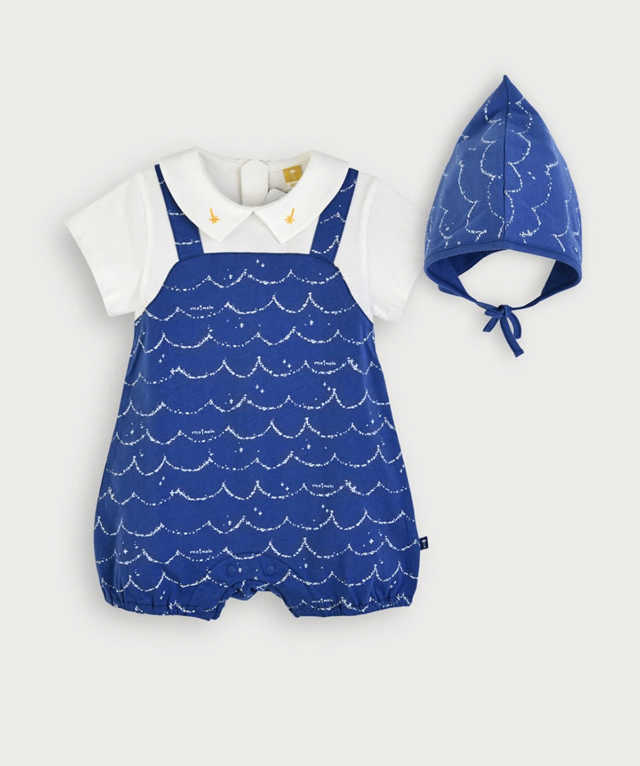 【2点セット】ムーンウェーブ半袖カバーオール&帽子