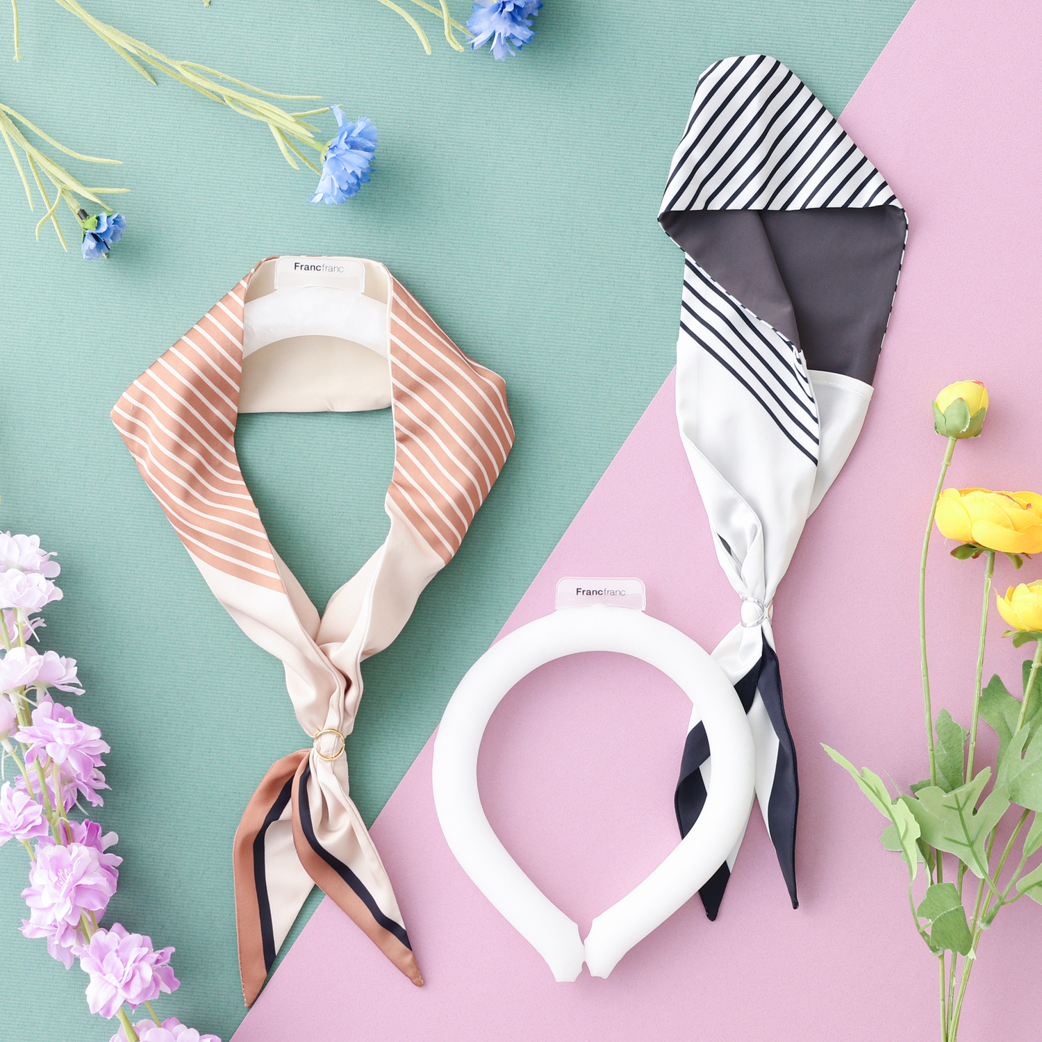 おしゃれに暑さ対策を叶えられる、アイスネックループとスカーフ、スカーフリングの3点セットです✨